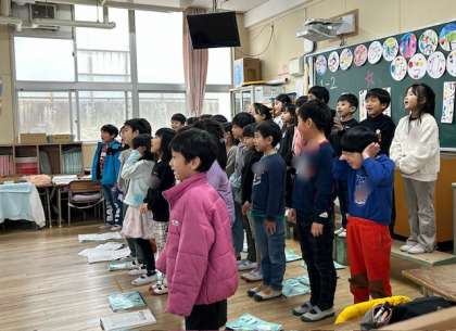 1年生の学習参観は、「できるようになったよ」発表会です。計算カード、漢字、なわとび、けん玉、音読、鍵盤ハーモニカ、時計、むかし遊び、作文など、たくさんできることがあります。この1年で大きく成長したね。