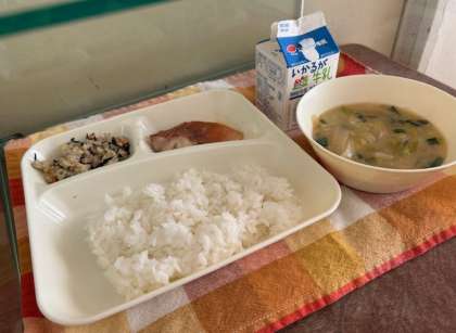 献立は、あかうおのレモンじょうゆかけ、さつまいものみそ汁、高野どうふのいり煮、ご飯、牛乳です。