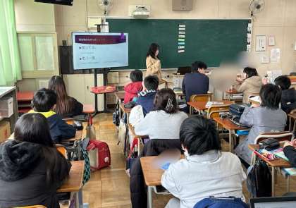 2年生と6年生のイングリッシュタイムの様子です。2年生は映像を見て、英語を聴きました。その後、先生からの質問に答えました。