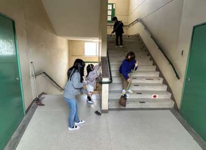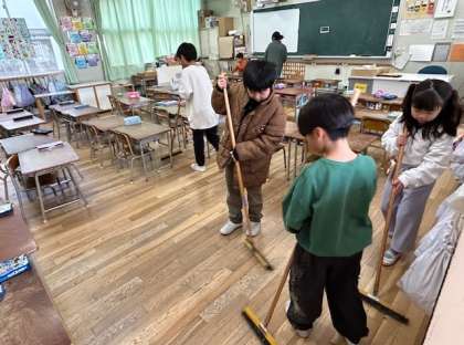 本年度初めてスマイル班(たてわり班)で掃除をしました。各スマイル班に割り当てられた掃除場所を協力して掃除をしました。6年生が低学年の児童に掃除の仕方を教えてくれました。普段できない所を掃除できました。学校がきれいになりました。