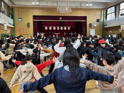 初めに6年生と1年生が手をつないで、花のアーチをくぐって入場しました。次に、スマイル班でゲームをしました。6年生と体全体でポーズをとってじゃんけんをしました。あいこの時は、ハイタッチをして6年生に声をかけます。6年生が円の中に入り、順番にじゃんけんをしていきました。楽しかったです。