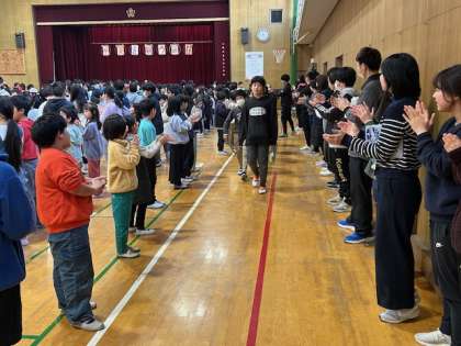 6年生から在校生へのメッセージがありました。それを受けて在校生代表から6年生への感謝の言葉がありました。最後は、スマイル班の間を通って退場しました。6年生の皆さん、卒業おめでとうございます。