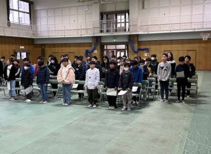 5年生が今日から卒業式の練習を始めました。在校生の代表として卒業式に出席し、呼びかけや合唱をします。今日は初めて呼びかけの練習をしました。これから呼びかけの言葉を覚えていきます。