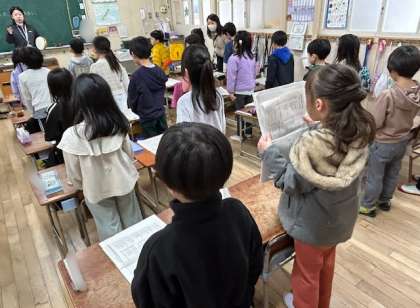 2組は、入学式で行う新1年生への歓迎の呼びかけの練習をしました。