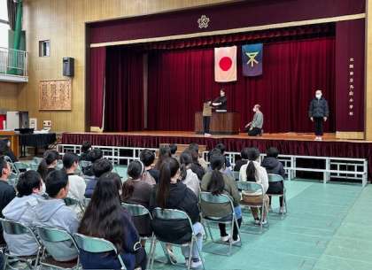 6年生は、今週から卒業式の練習をしています。今日は卒業証書の授与の仕方を練習しました。座席から舞台へあがり、どこで止まってどのタイミングで礼をするのか、卒業証書をどのように受け取り、回れ右をして座席へ戻るのかなど、動作をひとつひとつ覚えました。