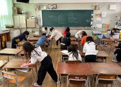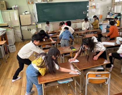 新1年生が使うことになる教室を丁寧に掃除しました。特に、机の天板を雑巾で一生懸命に拭いていました。ありがとう1年生。