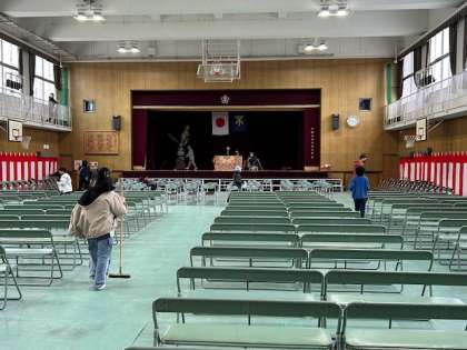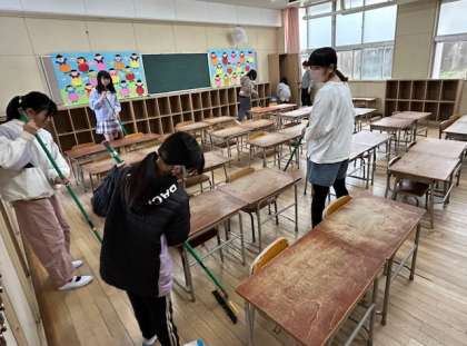 新6年生が入学式の準備のため登校しました。1年生の教室、体育館、花の広場、トイレなど、とてもきれいに掃除をしてくれました。