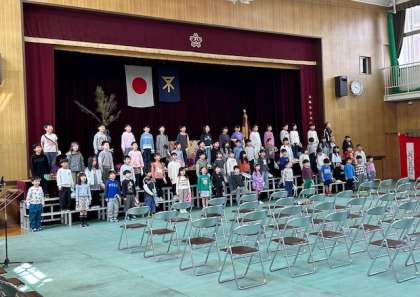 新2年生が入学式で歓迎の呼びかけ、歌、リコーダー演奏をします。今日は保護者の皆さんが見守る中、リハーサルをしました。少し緊張している様子でしたが、上手にできていました。2年生の皆さん、4月7日の入学式でもがんばってね。