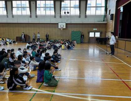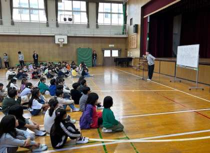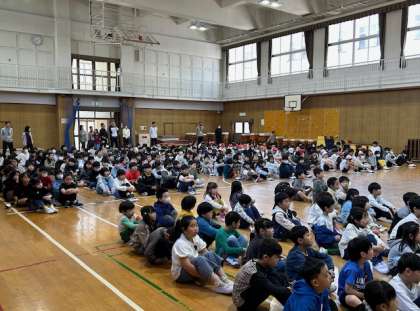 1年生が全校朝会に参加するのは来週からです。2年生から6年生が体育館に集まって、全校朝会をしました。校長先生からは大阪・関西万博の話がありました。看護当番の先生からは4月の生活目標である「安全に登下校しよう」のお話がありました。4月は交通事故が多いので、気をつけて登下校しましょう。