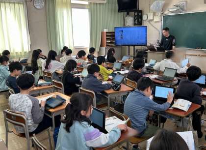 2組は国語「こわれた千の楽器」を学習しています。今日は音読を聴いて、初発の感想をタブレット端末に書き入れました。