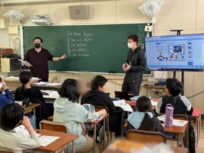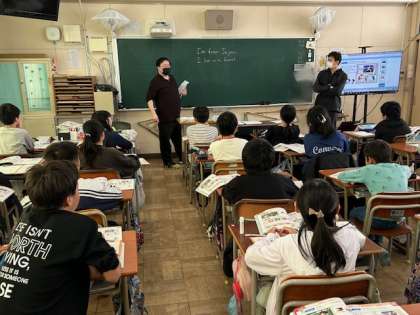 6年生がC-Netの先生と一緒に外国語(英語)の学習をしました。