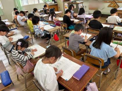 算数は、「なかまづくりとかず」を学習しています。今日は「4と5」の数字について学びました。丁寧に4と5の数字を書いていました。