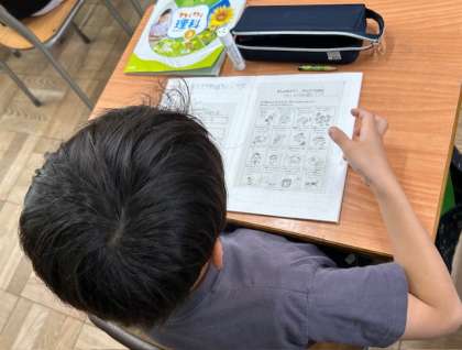 国語は、国語辞典の使い方を学習しました。ボールは「ぼうる」か「ぼおる」のどちらで調べたらいいのか、国語辞典を使って調べました。