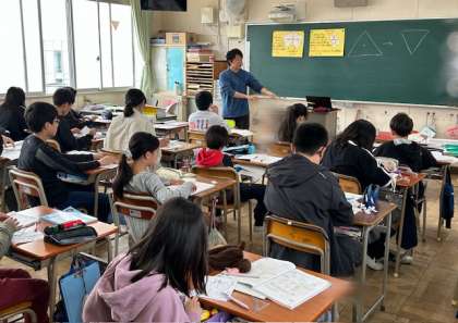 算数は「対称な図形」を学習しました。今日は学習のまとめとして、線対称、点対称、対称の軸、対称の中心について復習しました。