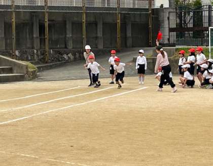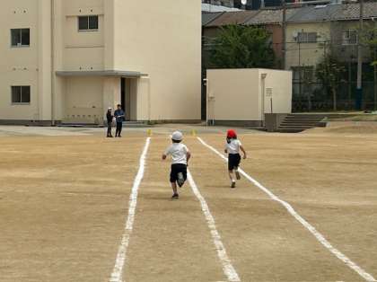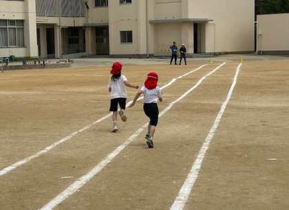 2年生が50m走を計測しました。スタートダッシュをして全力でゴールを駆け抜けていました。