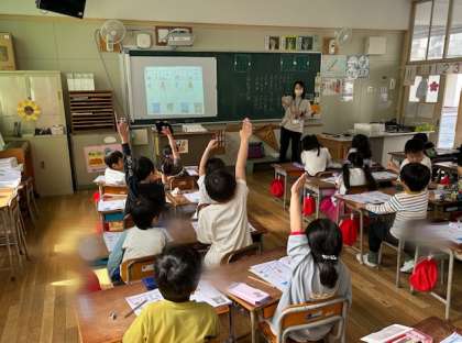 2組は、「あいうえおのうた」で口の形に気をつけて、あいうえおのうたを言いました。