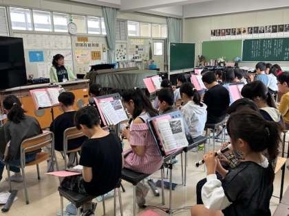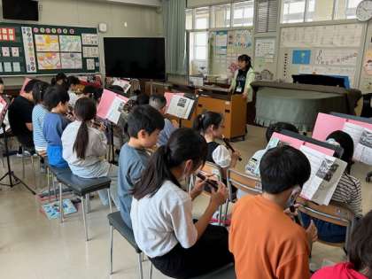 音楽は「かけ合いや重なりを生かして演奏しよう」を学習しています。今日は、リコーダーで「星笛」を練習しました。