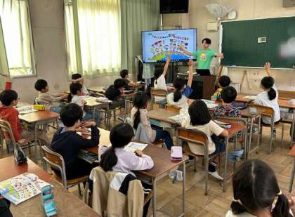 外国語活動は、「Unit1 Hello!あいさつをして友だちになろう」を学習しました。映像を見ていろいろな国のあいさつを知り、あいさつの練習をしました。