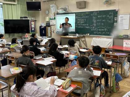 1組は、算数「3けた÷1けたの筆算の仕方を考えよう」を学習しました。百の位から順番に商を立てると、これまでのわり算の筆算と同じやり方で計算ができました。