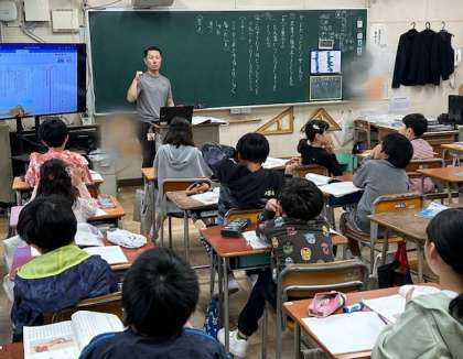 2組は、国語「ヤドカリとイソギンチャク」を学習しました。文章の組み立てをとらえることがねらいです。