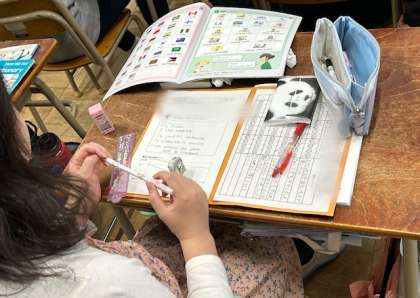 外国語は「Unit1 This is me」を学習しました。自己紹介で伝えたい内容を英語で作りました。