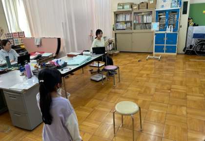 2年生が保健室で視力検査をしました。近年、子どもの視力低下は増加し、裸眼視力1.0未満の子どもの数が過去最高を記録しています。視力検査をして気になる点があれば、専門医で診てもらってください。
