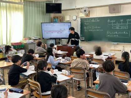 算数「あわせた時間の求め方を考えよう」を学習しました。数直線や模型の時計を使って考えました。