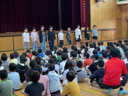 今日の児童集会は、各委員会の委員長の紹介と決意発表をしました。