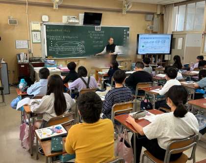 算数は「比例」を学習しています。今日は比例の関係を使って問題を解きました。