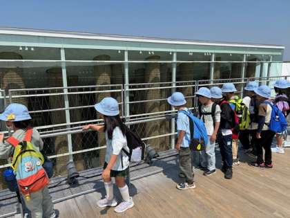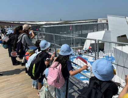 大屋根リングに上がり、アラブ首長国連邦やカナダ館を見ました。すごく大きくてきれいでした。