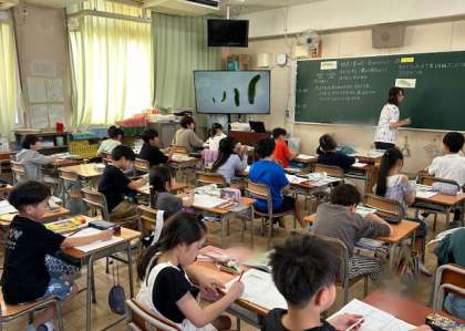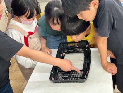 3年生が理科「チョウを育てよう」を学習しています。今日は、幼虫とさなぎについて調べ、ノートにまとめました。幼虫からさなぎになった様子を観察しました。