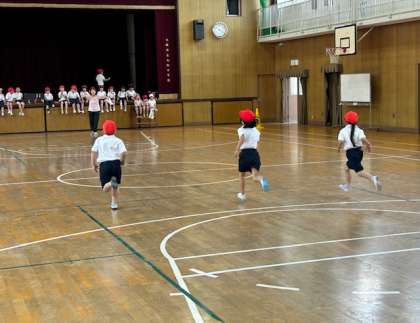 ドレミファソラシドの音の間に20mを走ります。1年生は初めての20mシャトルランでしたが、最後までがんばって走っていました。