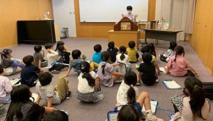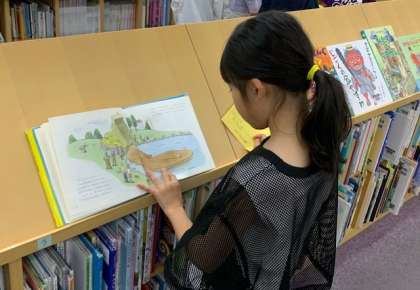 阿倍野図書館では、係の方に紙芝居を読んでもらいました。また、自分たちで好きな本を読みました。たくさん本があって楽しいです。