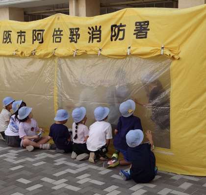 2年生から4年生は煙体験、水消化器の体験、新聞紙でのスリッパを作りをしました。