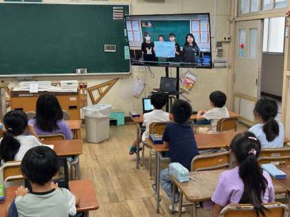 今日の児童集会は、給食委員会からのクイズです。給食の配膳の仕方、食缶の返し方など、クイズ形式で楽しく学ぶことができました。