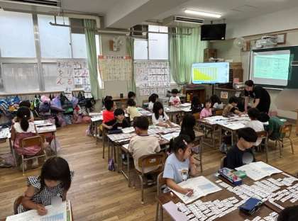 1組はカードを並べて考える問題をしました。机上に計算カードを並べて、問題を解きました。