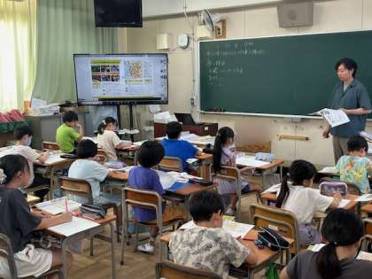 1組は社会科「工場ではたらく人の仕事を調べよう」を学習しました。教科書の写真を使って、金属や野菜、パンなど、生産者から売る人へどのようになるのかを調べました。
