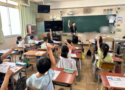 3組は、今日からローマ字の学習を始めました。ローマ字ノートを使って、あ行「aiueo」の書き方や読み方を学びました。