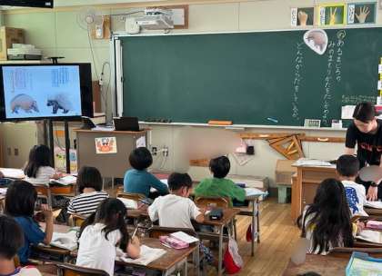 1組は「どうやってみをまもるのかな」を学習しました。説明文を読んで、あるまじろの身の守り方を確かめました。