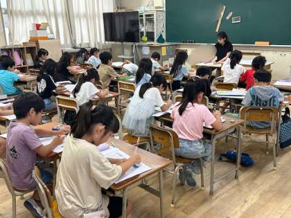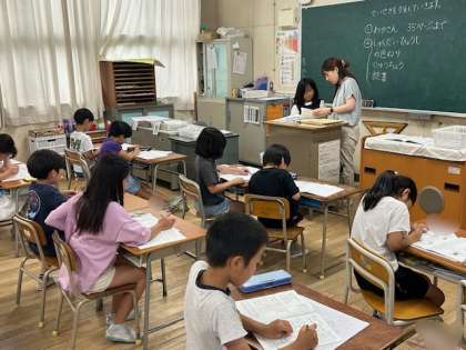 夏休みのくらしを使って、生活や宿題について説明をしました。担任は、一人ひとりにコメントをして、通知表を渡しました。