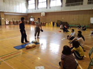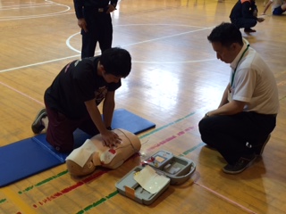 一人ひとり、人形で人口呼吸やAEDの体験をしました。
