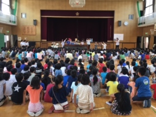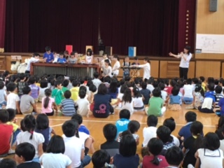 土曜授業で、金管五重奏 打楽器アンサンブル演奏会を行いました。子ども達の知っている曲が演奏されると自然と口ずさむ声が聞かれ、楽しいひと時を過ごすことができました。マリンバ体験コーナーもあり、盛り上がりました。
