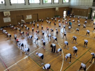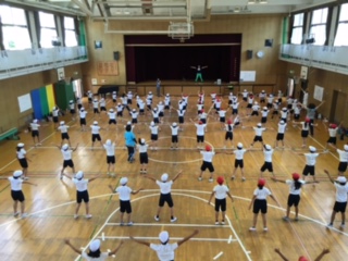 3.4年生のみなさんが1つ1つのステップを教えてもらいながら音楽のリズムに合わせて「めっちゃスマイル体操」を楽しみました。