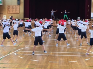 丸山小学校にダンスプロがやってきました。小学生にもっと運動にダンスに親しんでもらうことがねらいです。