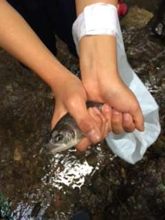 アマゴのすばやさにはじめはタジタジでしたが、次第にコツをつかんで捕まえることができました。