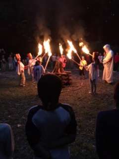 火の神と火の子が登場して、キャンプファイアーが始まりました。