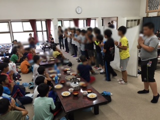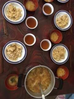 林間学習最後の食事です。メニューはかやくご飯です。
