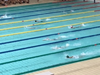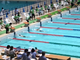50mプールの会場に圧倒されましたが、参加者全員完泳しました。よくがんばりました。
