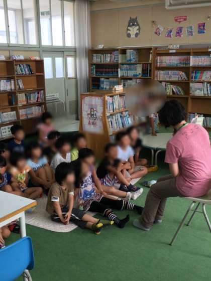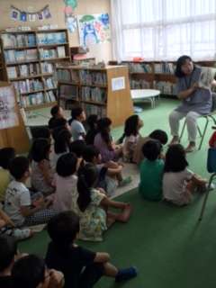 今日の図書館開放では、図書ボランティアのみなさんの絵本の読み聞かせ会がありました。