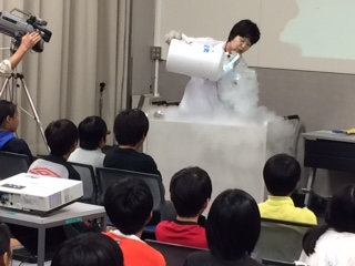 液体窒素を使った、極低温の世界の実験を見ることができました。とても楽しく、ビックリする実験でした。